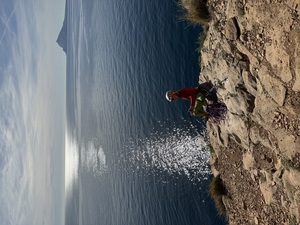 After some traversing along ledges, anywhere between 5 and 10m above the sea, the first proper climbing pitch is reached. This involves stepping off a ledge, onto little footholds, that can only be seen by hanging off your arms, leaning out and looking down, with only an inch of foothold between you and the sea. Known in climbing parlance as ‘exposure’, this climb is great for working on the mental side of resilience as well as maintaining some composure to fulfil the leadership role. The rest of the route gets progressively harder the higher up you go, with some fun exposed belay positions looking out to sea. Once everyone was at the top, there was a refreshingly open and honest conversation along the lines of, that was enjoyable, but it was at the upper limit of what the students felt they could achieve and still remain outwardly composed. Discretion being the better part of valour, we headed back to join the rest of the group.