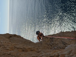 The beginner group had by now all become proficient belayers and received coaching input for their climbing performance, which was starting to show in the grades being climbed. The following day we built on that foundation of top roping and introduced lead climbing (any belaying). Though only after a slightly inauspicious start, when 5 of the group got locked inside an upstairs apartment after the outside door broke. This was used as an opportunity to teach self-protected abseils and with some rigging off the building, everyone abseiled off the balcony so we could go climbing.