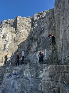 Day 4 – Climbing & Abseiling: The final morning saw the cadets up early to pack and clean the accommodation prior to their final day of climbing and abseiling. Some of the group had some experience of climbing on indoor walls but for most this was their first opportunity to climb on rock. The group were once again led by instructors from Argoed Lwyd who set up some challenging routes and a significant abseil. It was enjoyable to watch the cadets working together in small teams to belay each other and support with words of advice and encouragement. Initial climbs were often accompanied by phrases such as ‘I don’t want to go any higher’ or ‘there is nothing to hold on to’ but as confidence and technique quickly developed these changed to ‘I want to try that again’ or ‘I want to try the harder route now’. The abseil as always proved to be a real confidence tester and it was clear to see the trepidation in cadets faces as they lowered themselves over the edge. All did it successfully with many going back for a second and third attempt.