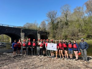 For many in the group this was the first time paddling in open boats and they quickly got to grips with how to work together in their pairs to manoeuvre their craft. A few team games along the way helped develop paddling confidence and technique. A lunch stops on the Usk river provided the opportunity to indulge in a stone skimming and a rock tower building competition. The air temperatures warmed up nicely during the afternoon paddle back to the start point encouraging the instructors to introduce more ambitious games, further developing confidence and paddling skills. Inevitably this led to the first cadets enjoying a refreshing dip in the canal and lots of splashing of rival boats.
