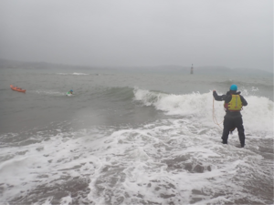 We went to a different location in Torquay so that we could practice rescuing and being rescued in surf conditions. The conditions were a shock, with me being the first to capsize whilst trying to ride the surf into shore. Having been told to paddle backwards to control the boat on a wave, I did not repeat this mistake – even though conditions became more challenging later. I thoroughly enjoyed jumping out of my boat, attaching myself to it, and then swimming it onto a rock; we then hopped back in the water, swam out, and performed a cowboy rescue to get back in. This day was the most challenging day by far and made me more comfortable in the water the following day.