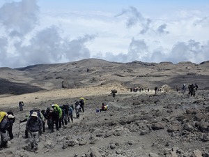 Day 5: Karanga Camp to Barafu Camp Summit preparation day covered 4 kilometers to Barafu Camp (4,673 meters), the launch point for the final summit push. The stark, lunar-like landscape offered little vegetation as the team entered the alpine desert zone. After establishing camp, climbers rested during the afternoon before an early dinner and attempted sleep before the very early summit departure.